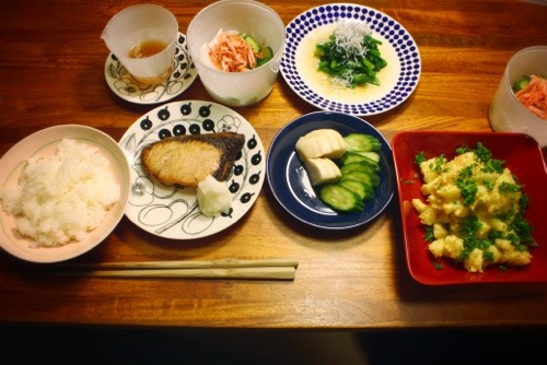 って言っても酢大さじ1、醤油大1(薄口1/2と濃口1/2)、みりん大1、ショウガ汁小1/2を食べる時にかけるだけ。青山有紀さんレシピ。