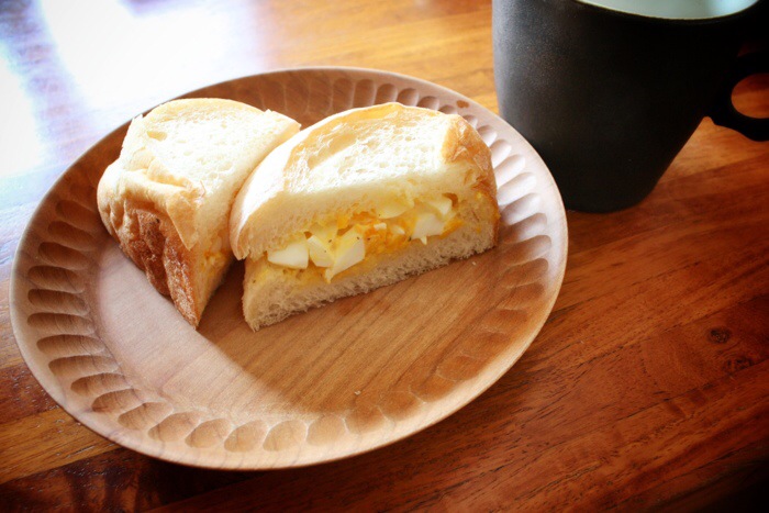 お友達がサンドイッチにしたらイイよと教えてくれたので、朝たまごサンドにしました。